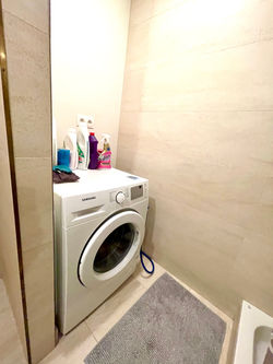 Composition : hall d'entrée, séjour avec cuisine américaine super équipée (four, hotte, taque vitrocéramique, lave-vaisselle, et frigo), hall de nuit, 2 belles chambres lumineuses (+/- 14.6m² et +/- 11m²), 1 salle de douche et 1 toilette séparée